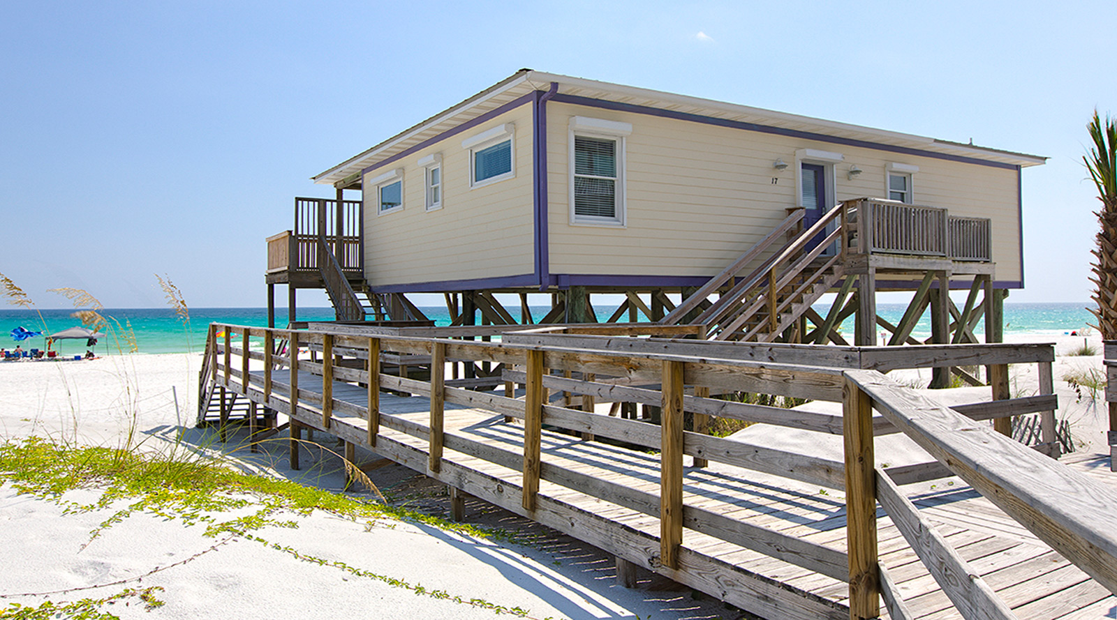 A Suite Life is a classic two bedroom beach house perched above the sugar white beach at Dune Allen that sleeps six. A balcony deck spans the width of the house taking full advantage of the sensational 180-degree panoramic views. These vivid vistas extend all along the beautiful beach and as far as you can see into the sparkling southern horizon. You will want to spend much time here since in addition to the lovely views you may relish the gentle roar of the surf.