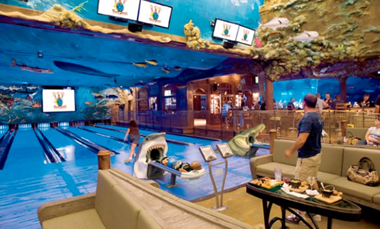 The southwest corner at the intersection will be anchored by a large 20,000-square-foot restaurant/entertainment venue called Uncle Buck's Fish Bowl and Grill. This new restaurant was conceptualized by the Bass Pro Shops to provide a unique place for casual dining and will include sixteen lanes of bowling for family fun. The atmosphere is specifically designed with an island-themed bar area that will resemble a sunken treasure ship complete with skeletal remains and jewels. The walls will have big fish tanks featuring colorful exotic fish of all kinds while replicas of sharks will hang suspended from the ceilings appearing to be swimming overhead. Besides adult beverages, the restaurant will be serving family fare that includes tasty appetizers, sandwiches, salads, and burgers.