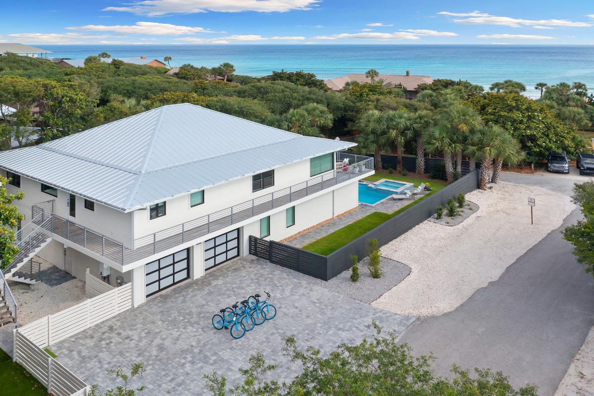 Seven Palms may be a four-bedroom home, but it lives far larger—offering room for up to 15 guests, a private pool with spillover spa, lush tropical grounds, and a rare location beside Stallworth Lake and a quiet stretch of Dune Allen Beach. Its thoughtful layout includes lower-level bonus sleeping quarters, an upstairs open-concept living space with wraparound balcony, a state-of-the-art kitchen, and elegant contemporary guest suites. Outdoors, a three-hole putt-putt course, furnished patio, and easy access to Topsail Hill Preserve add to the fun. Just minutes from Gulf Place’s restaurants, shops, and entertainment, this stunning Dune Allen retreat proves that a four-bedroom home can absolutely play in the big leagues—and book just as fast.