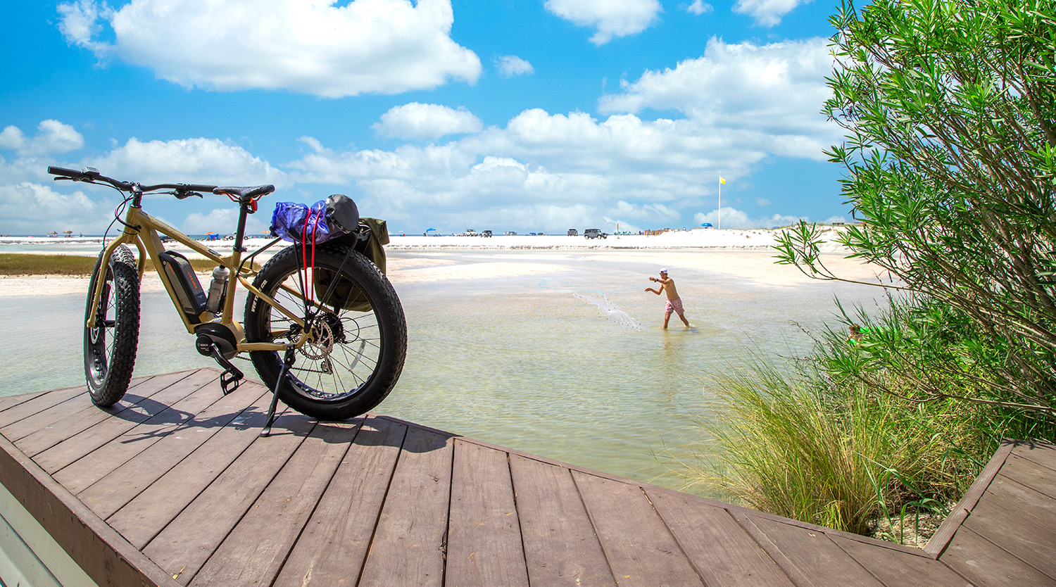Destin and 30A also cater to a sub-niche of this trend called "credit card bikepacking." This is where you carry many of your belongings, but instead of roughing it in a tent, you stay in hotels or vacation rentals and eat out at restaurants. Basically, it's the bikepacking version of glamping!