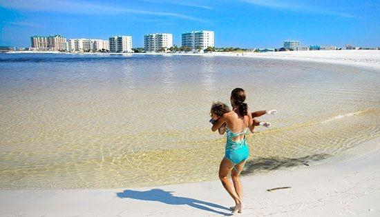 One great Destin rental option is at the sensational Silver Shells Beach Resort which sits facing over 1,000 linear feet of some of the most beautiful powder white beaches in the world and overlooking the emerald green waters of the gorgeous gulf. An oversized balcony takes full advantage of these awesome vistas. Better yet, Silver Shells adjoins the expansive Henderson Beach State Park towards the east with even more beautiful beaches to roam. Silver Shells also hosts an expansive lagoon swimming pool that is 7,500 square feet of fresh water fun with more views of the sugar white beach beyond. There is a massive patio for sun bathing that is surrounded by clustered islands of palm trees that sway in the breeze along with a nearby waterfall and a bubbling hot tub to soothe your cares away. An additional rectangular pool at the club house is located half inside and half outdoors with a beautiful, classically columned patio area. The pool side restaurant, The Silver Shells Sandbar & Grill, serves great salads, seafood sandwiches, tasty burgers and delicious appetizers. They also have a fully stocked bar to suit your thirsty needs. The setting provides the perfect place to munch on some good food while sipping on a frozen tropical drink and checking out the pool or beach action. Ruth's Chris Steakhouse, nationally acclaimed for their award winning prime beef is also located at Silver Shells for a fancy meal, special occasion or simply because you are, after all, on vacation. They are also known for their fresh seasonal seafood, New Orleans inspired appetizers and deliciously decade. Mom and the girls may want to enjoy a full day of pampered indulgence at the Spa at Silver Shells. This luxurious facility offers facials, manicures, pedicures, hydro therapy, aroma therapy as well as Swedish and European styled full body massage. There is also a full service salon for every hair care need. If long walks on the beach, body surfing and swimming are not enough exercise for you to enjoy, a state of the art fitness facility is also on site. This includes specialized Body Master's equipment, weight programs, cardiovascular equipment and a number of aerobic programs. There are also private tennis courts on site and even a basketball court for fun, competitive workouts.
