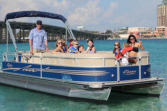 Legendary Crab Island can be seen on the bay side of Destin from the top of the Marler Bridge at East Pass. However don't try too hard to find it because (guess what?), it's really NOT an island at all! Crab Island used to be an island of sorts but was actually a large raised sand bar where locals liked to go to catch crabs. Over the years it slowly submerged but the name stuck and now it is a friendly floating playground for the boating crowd who go there to party when the water is warm. During this time on any given day, you will see a huge fleet of boats anchored there that range in size from Jet Skis to full-sized yachts. The translucent water at Crab Island remains as clear as a swimming pool while the tide is coming in so it is a fun place to snorkel, however, you would be missing out on the party if you do. It is a very social place since most gather there to enjoy eating, drinking, listening to music, and all forms of merriment. Very social partygoers wade from boat to boat in the refreshing water that runs anywhere from knee high to just past your shoulders in depth. This wonderful watery playground is the perfect spot to splash around and play. Many visitors join in the fun by renting out pontoon boats from LDV Water Sports at nearby Harborwalk Village where Ocean Reef Resorts guests receive special discounts. There is nothing more relaxing than joining friends on a boat while having fun floating around with an ice chest full of cold beer or soda and a picnic basket stuffed with tasty treats. The increase in popularity over the years has led to some live musical broadcasts there by popular local radio stations, such as the availability of floating trampolines, big bubble balls, and portable slides. Many food vendors now deliver sandwiches, beer, and favorite frozen beverages to everyone by boat for those who haven't brought their own provisions.