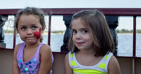 Captain Cannonball and the buccaneer crew usually start their day before 8:00 am since the first passengers board at 9:00 for a departure at 9:30 am. He starts by checking out all of the elaborate equipment in the impressive engine room, setting up the sophisticated sound system that provides pirate tunes, preparing the cannons that are to be fired and has a meeting with the crew to discuss the day's scheduled adventures. At 9:00 he and most of the crew change into their elaborate pirate costumes which includes special sashes, jewelry, swords, hats and boots. The same kind of accoutrements are available for sale in the galley including "Jack Sparrow" hats, beads, pop guns and swords. Food, sodas and pirate's brew for adults are also available. At 9:30 the captain welcomes adventuresome passengers and introduces the crew. A Safety Briefing is also presented since this ship can accommodate up to 149 buccaneers. At 9:30 the ship sets sail out of Destin Harbor and Captain Cannonball of course, fires the cannon to let everyone know they are underway on a treasure hunt. From 9:30 until about 11:00 lots of fun activities occur which includes hoisting the ship's colors and flags. The crew teaches kids as well as the young at heart how to talk, walk and dance like a pirate. This includes learning how to do the "Sea Leg Stomp" and other dances accompanied by fun rollicking music. Face paint and temporary tattoos are provided so that everyone can become a fellow buccaneer. Little buccaneers are taught the art of sword fighting and marksmanship skills in order to defend the boat from possible scoundrels or scalawags.