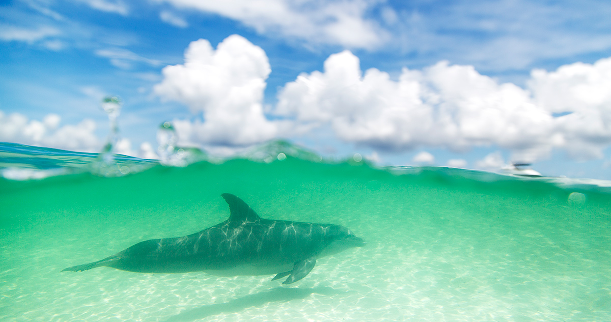 Many of our Ocean Reef Resorts guests enjoy the thrill of watching pods of dolphins frolicking in the emerald green waters near the sparkling sugar sand beach. Usually, dolphins may be seen just beyond the interior sand bar since that's where they may feed on the abundance of fish that gather there. Such sightings can be an almost daily occurrence for those guests who are fortunate enough to stay in one of our fine beachfront homes or luxurious condo rentals on the Gulf. However, anytime you go to the beach you may spot some in the distance since dolphins always travel together in groups. You may see them up close anytime you leave the beach and get out on a boat into the open gulf, Choctawhatchee Bay, and often at East Pass where they travel from one point of water to the other. Quite a few opportunities are available in Destin to travel by boat on cruises that are specifically designed for the adventure of searching for dolphins.
