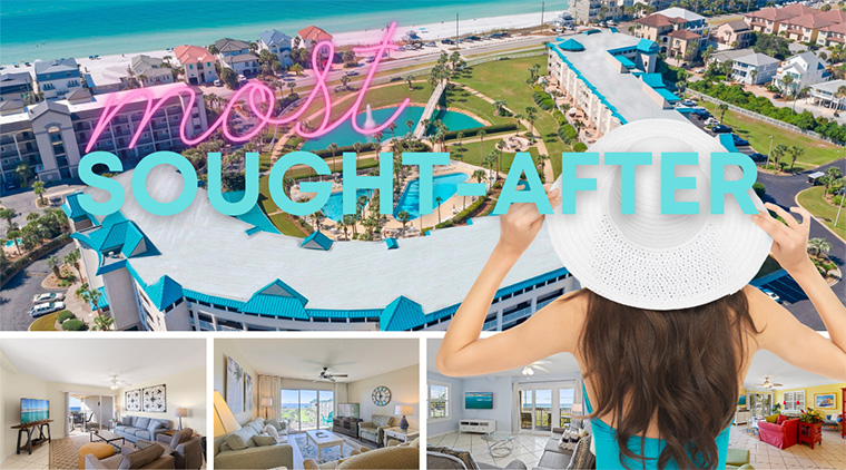 Sleeping up to eight fortunate guests, Amalfi Coast 411A is our most popular three-bedroom vacation rental at this fabulous beach destination. This comfortably furnished residence has a unique "end unit" position, which provides extra views of sensational scenery with an additional side window that overlooks the resort grounds.