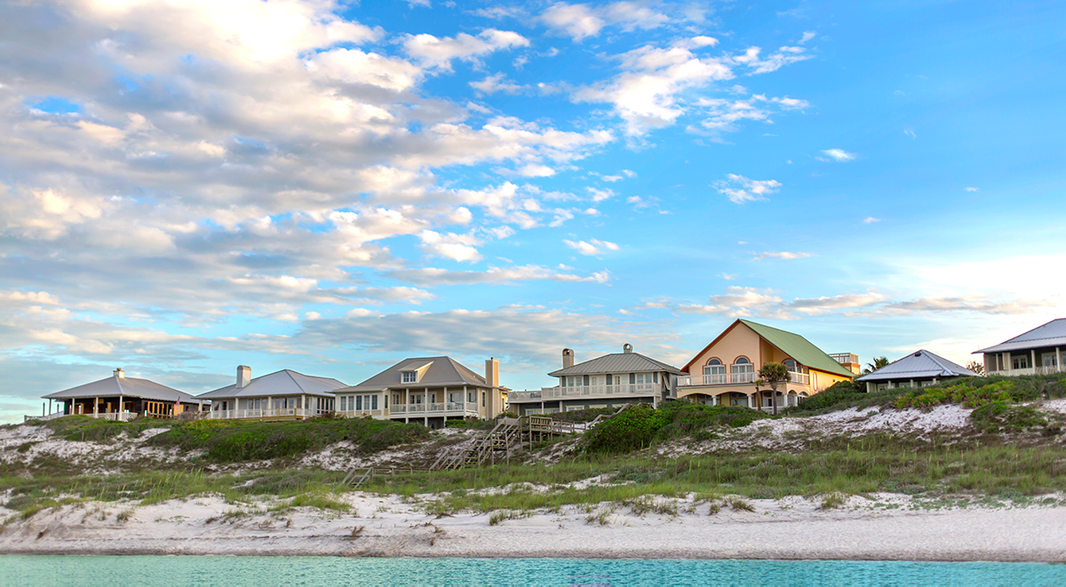 A little further down the road as you continue east you will get a stunning view of Grayton Beach State Park as you cross the isthmus at Western Lake. On the other side of Watercolor and the iconic Seaside, you will come into Seagrove Beach. This is the oldest established community along Scenic Highway 30A and started to attract tourists more than seventy years ago. It is comprised of quaint cottages as well as newly completed, luxurious condominiums and opulent beach homes that are available for as private vacation rentals. Seagrove Beach was named after the thick groves of Live Oak trees that predominates this area which also sits along the dunes. There are a number of restaurants, art galleries, antique stores and popular bars that have live bands on a regular basis. Seagrove Beach borders Eastern Lake and is only a short distance from Deer Lake. These areas provide serene sanctuaries for woodland hikes, kayak rides and walks along the sugary South Walton beach. Wild life is abundant here. You might even spot some deer grazing along the dunes at twilight with the Gulf serving as a majestic backdrop.