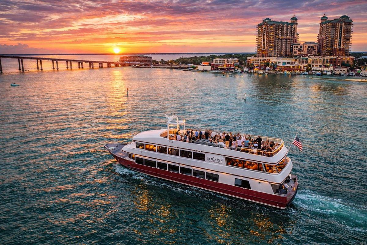 The SOLARIS yacht with SunQuest Cruises offers a three-hour evening on Choctawhatchee Bay complete with chef-prepared dining, live entertainment, and a full bar, departing from Sandestin Marina. It’s a polished, all-in-one experience that removes the guesswork from planning the night.