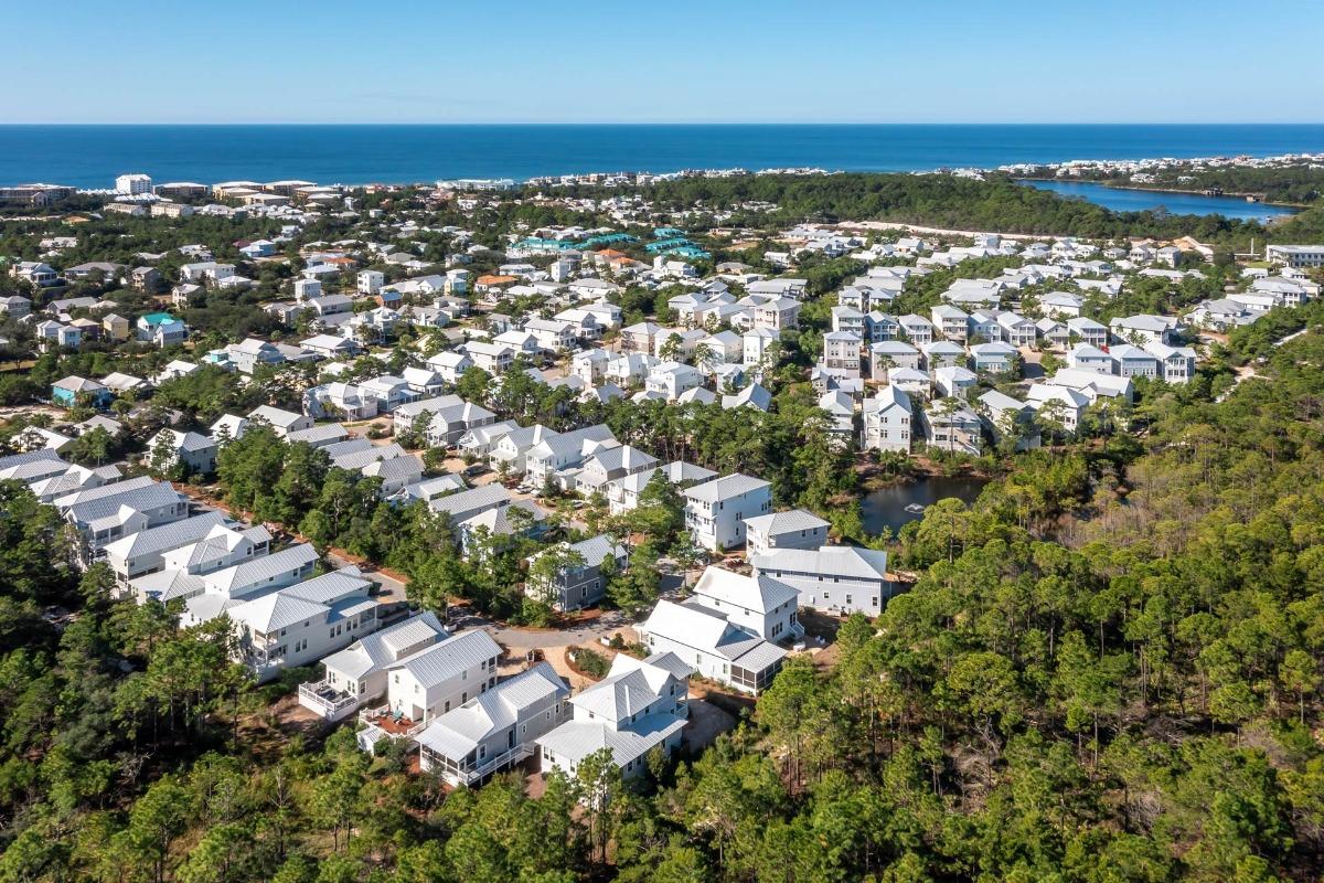 This privileged South Walton enclave also features a seasonally heated resort-styled swimming pool close to all the homes located in Highland Parks. It is lovely to behold with curvy sides and resembles a tropical lagoon. A small island with a palm tree is in its center, while the spacious patio around it is adorned with five more. A separate rectangular hot tub sits near a stone rock waterfall cascading down the poolside for a lovely effect. The pool patio also includes a nice built-in fire pit with Adirondack chairs for warm comradery on occasional chilly evenings. A covered pavilion has comfortable outdoor furnishings, a bar, and gas grills for poolside cookouts and entertaining. There are also convenient restroom facilities with dressing rooms and showers on site. A four-story observation tower next to the pool provides panoramic vista views of the surrounding forested scenery.