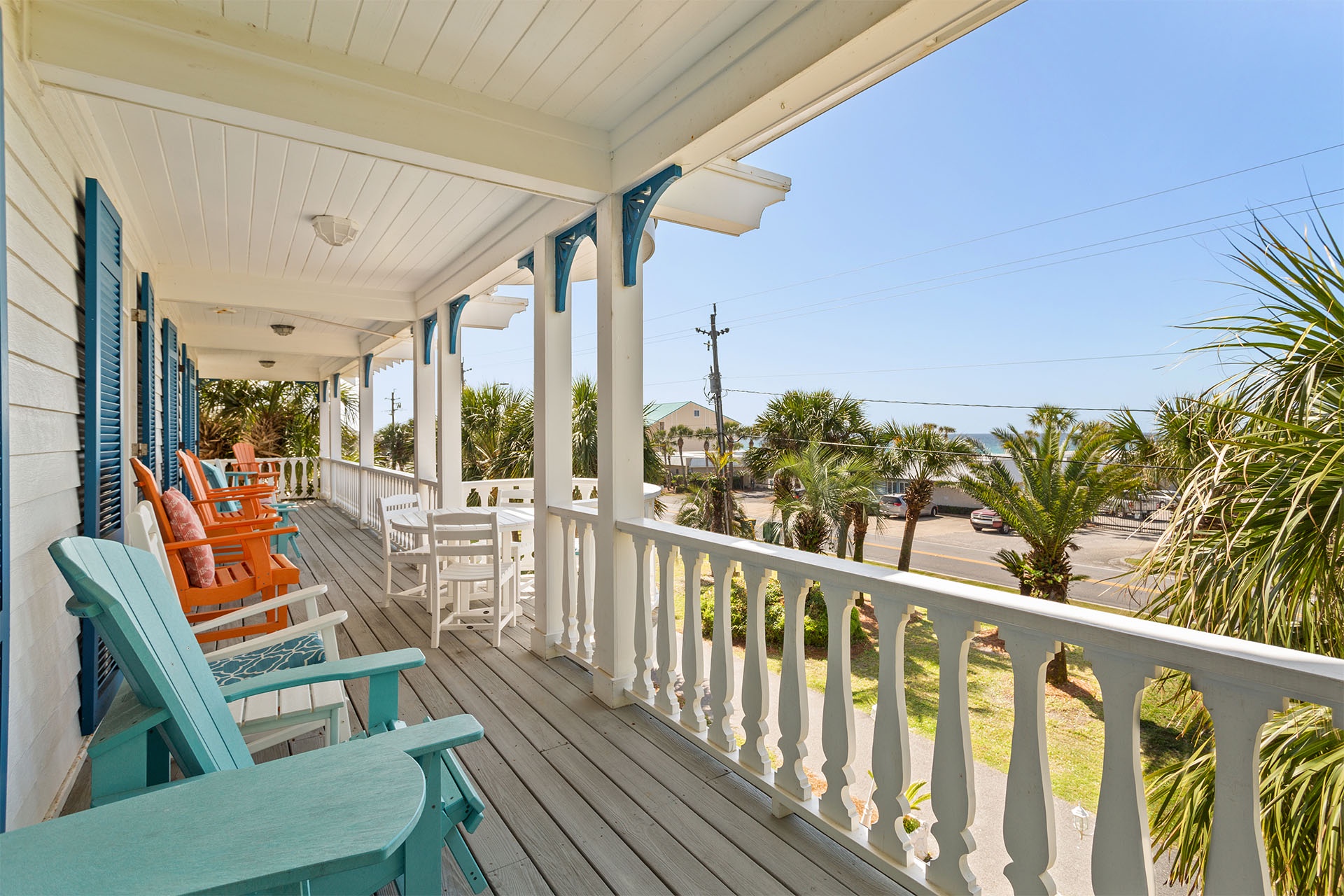 Wow! This will be the first word out of your mouth when you arrive at this stately Destin vacation home with six bedrooms and accommodations for 16 beach-seeking guests. The home's crisp white exteriors are accented by royal blue trim for a captivating nautical look. Two levels include covered wraparound balconies, while an upper-level balcony offers bird's eye views of the glistening gulf. All three levels overlook the lush grounds adorned with established tropical plantings and towering palm trees. This hospitable vacation home is less than a one-minute walk away from the neighborhood beach access and only seconds from the lagoon-shaped 9'x16' private swimming pool. The pool features lounge chairs, a dining table, and a gas grill for fun poolside cookouts.