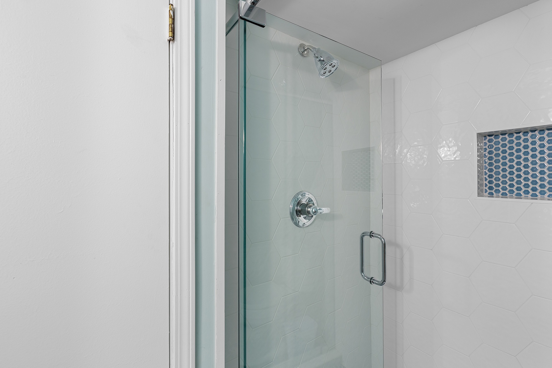 Second Floor: Living Room, Kitchen, Dining, King Bedroom, Shared Hall Bathroom with Walk-In-Shower.
