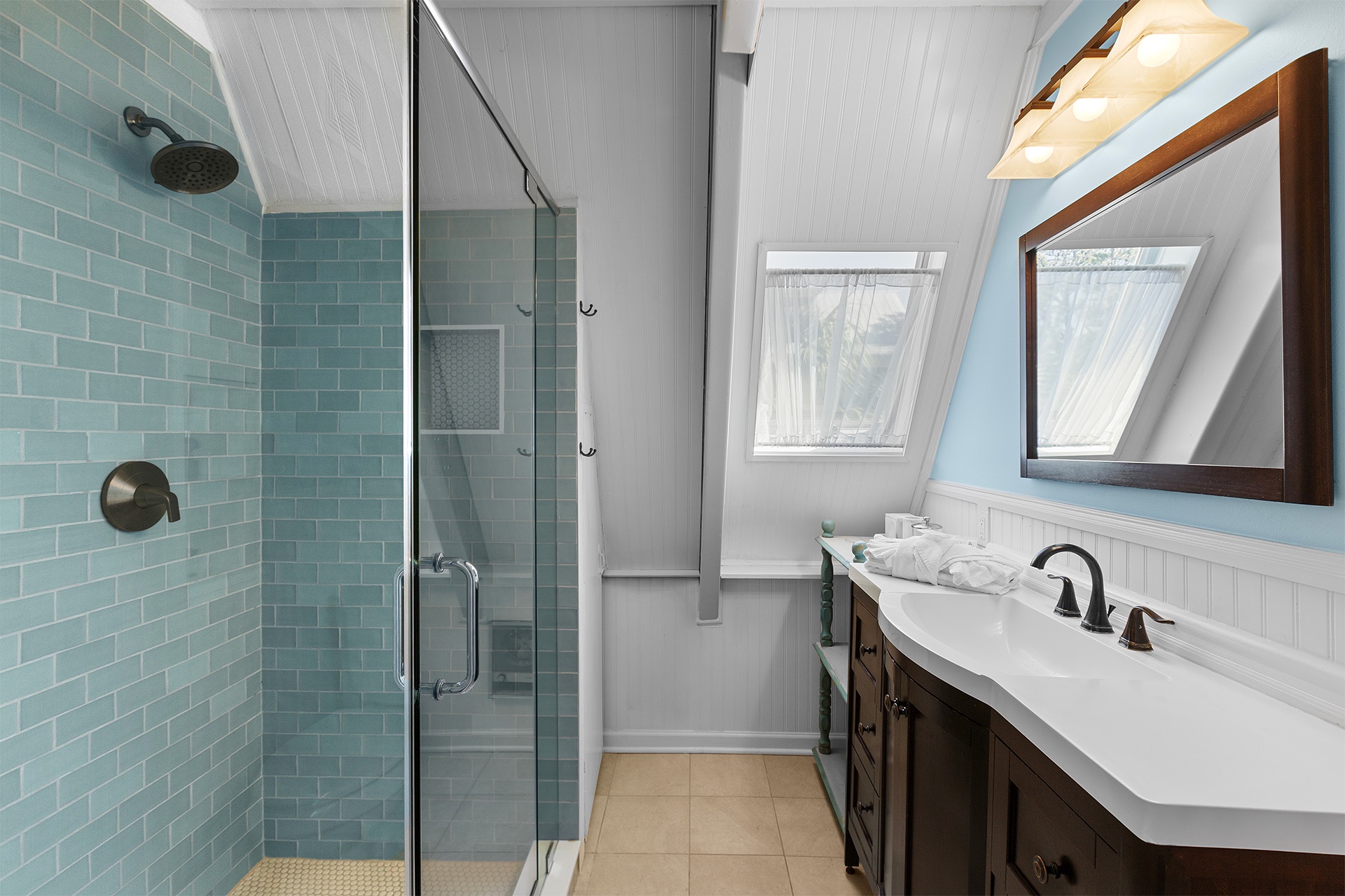 Third Floor: King bedroom with Walk-In-Shower, Loft Area with Two Twin Beds.