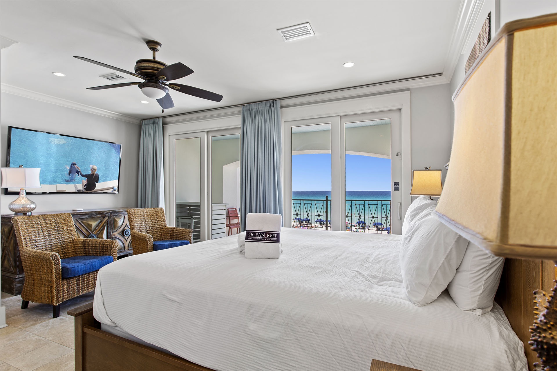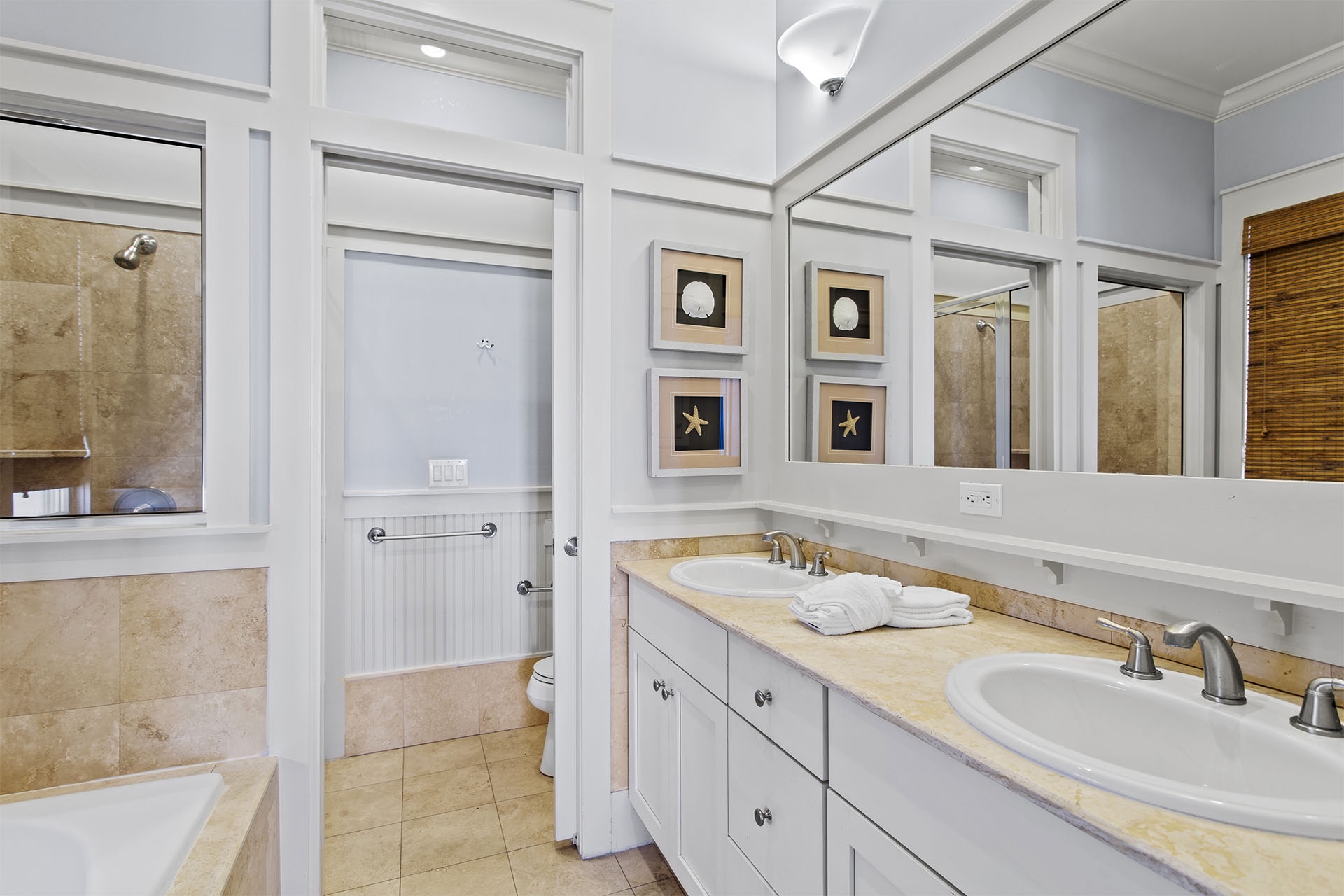 The third floor encompasses the main Master Bedroom Suite with an elegant king size bed, a 70"LED TV as well as a private beachfront balcony where you may enjoy the glistening views while listening to the soothing surf sounds. A full luxury bath en suite includes a soaking tub and double vanities. Another Guest Room on this floor has a nice king size bed, 50" Plasma TV and a full luxury bath.